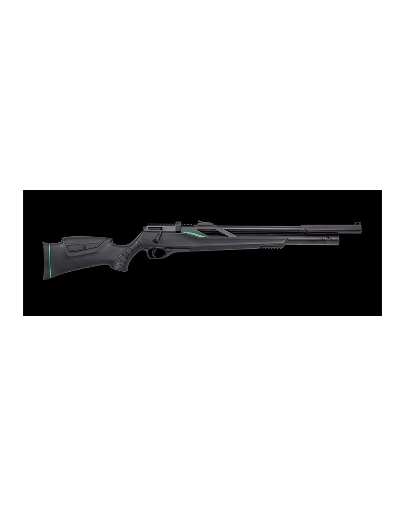Carabine PCP a réaremement manuel culasse linéaire équipée d'une détente réglable, un chargeur rotatif, un busc ajustable et un modérateur de son pour un confort maximal lors du tir.